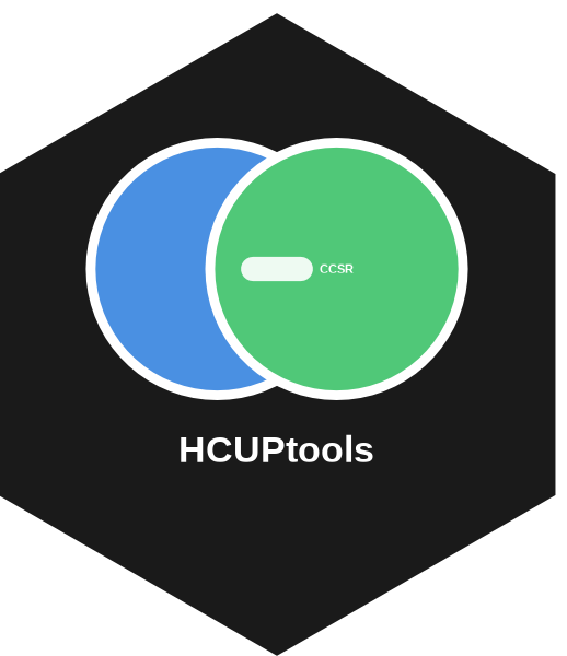 HCUPtools is a comprehensive R package for accessing and working with publicly available resources from the Agency for Healthcare Research and Quality (AHRQ) Healthcare Cost and Utilization Project (HCUP). The package provides streamlined access to HCUP’s Clinical Classifications Software Refined (CCSR) mapping files and Summary Trend Tables, enabling researchers and analysts to efficiently map ICD-10 codes to CCSR categories and access HCUP statistical reports.